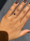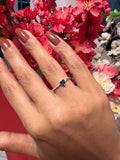Anel Solitário Prata 925 Noivado Coração Safira Azul Escuro