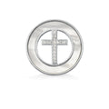 Pingente de Prata Círculo Madrepérola com Cruz em Pedra Zircônia